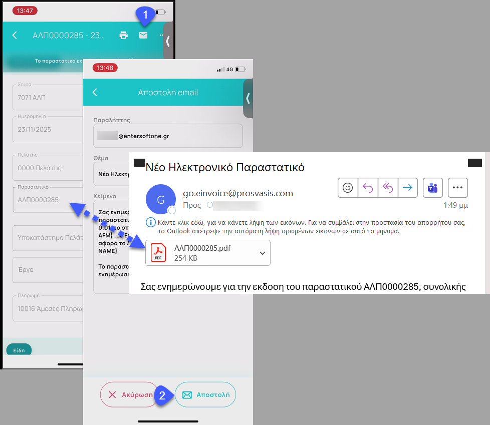 - Εναρμόνιση της ονομασίας του συνημμένου παραστατικού ,όταν αποστέλλεται με email.