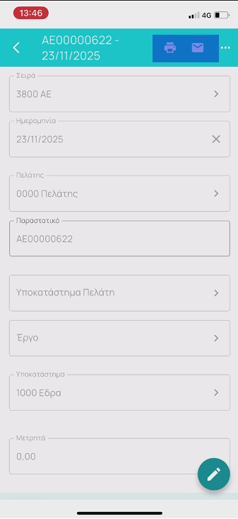 - Διόρθωση κατά την επιλογή «Εκτύπωσης» και «Αποστολής με email» των παραστατικών Εισπράξεων μέσα από τις Χρηματοοικονομικές εγγραφές