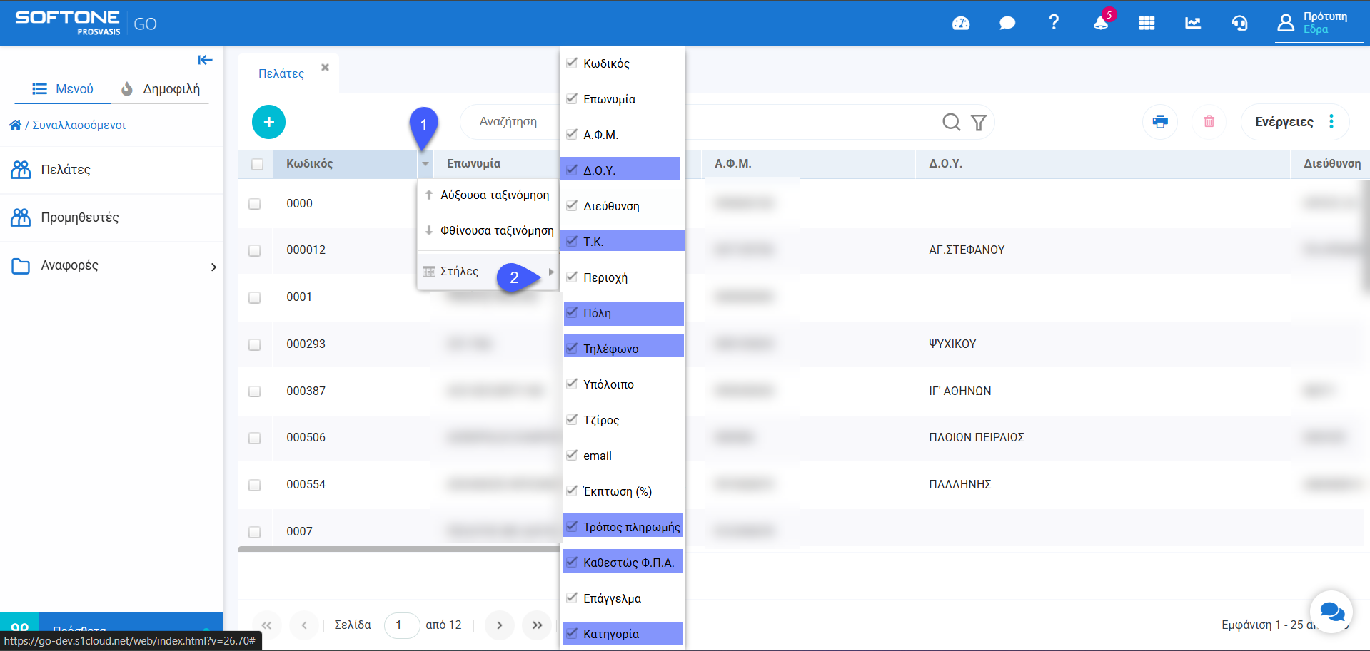 - Διαμόρφωση στηλών στα ευρετήρια συναλλασσόμενων (Πελατών – Προμηθευτών) ώστε να συμβαδίζουν στα απαιτούμενα με την διαδικασία Import – Export δεδομένων