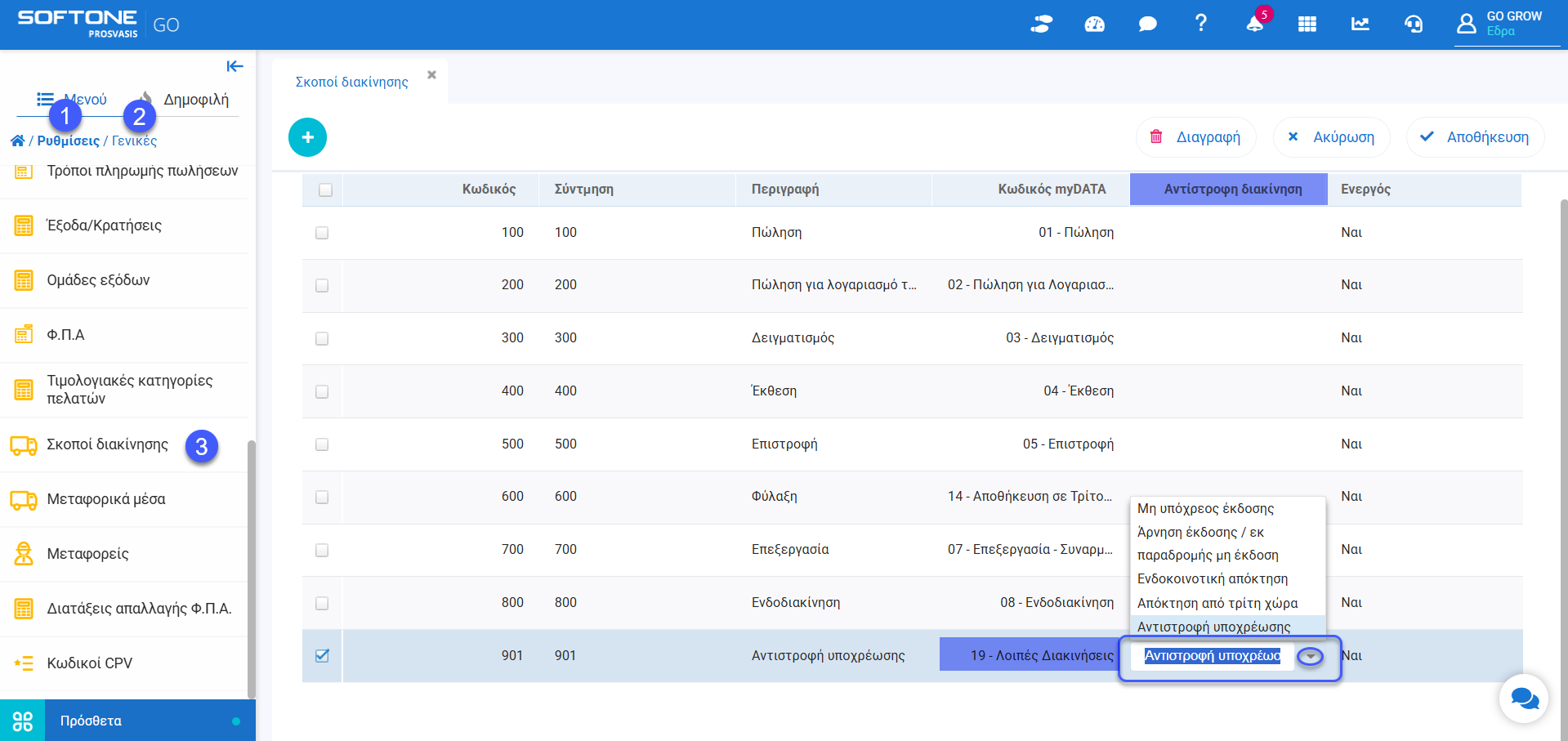 - Νέα πεδία στους Σκοπούς Διακίνησης «Αντίστροφη Διακίνηση»