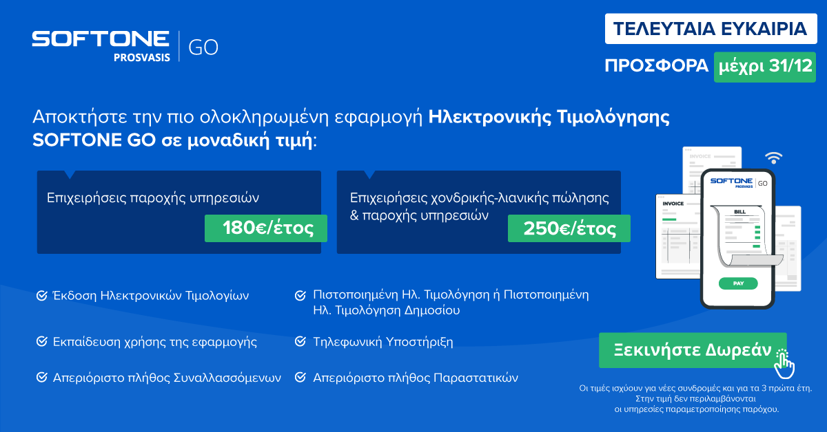 Αποκτήστε την ολοκληρωμένη εφαρμογή Πιστοποιημένης Ηλεκτρονικής Τιμολόγησης SOFTONE GO!